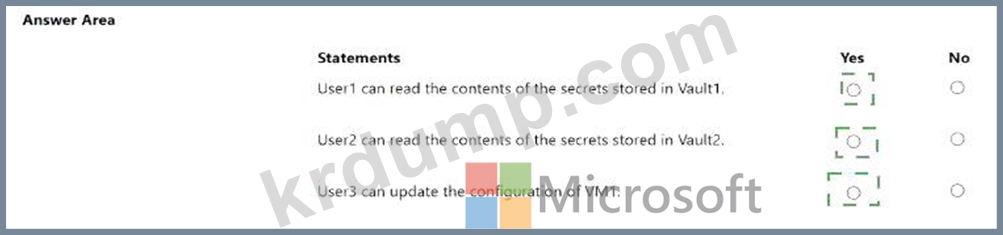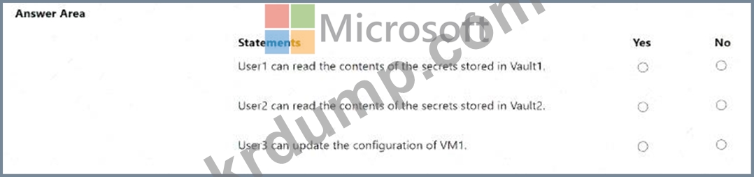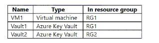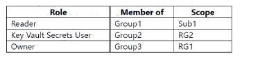 Sub1이라는 Azure 구독이 있는데, 이 구독에는 RG1과 RG2라는 두 개의 리소스 그룹이 포함되어 있습니다. Sub1에는 다음 표에 나와 있는 사용자가 포함되어 있습니다.