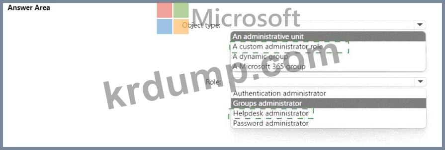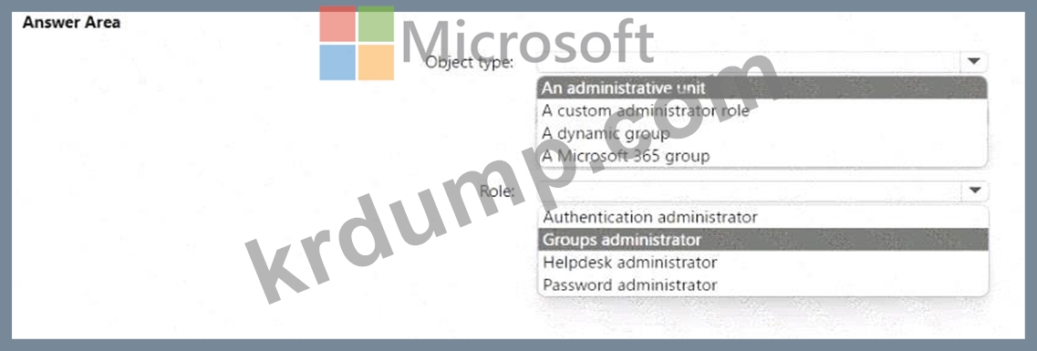 어떤 개체 유형과 Azure Active Directory(Azure AD) 역할을 사용해야 할까요? 답변 영역에서 적절한 옵션을 선택하세요.