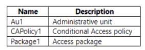 다음 표에 나와 있는 리소스가 포함된 contoso.com이라는 Azure AD 테넌트가 있습니다.