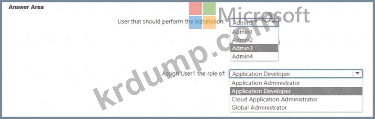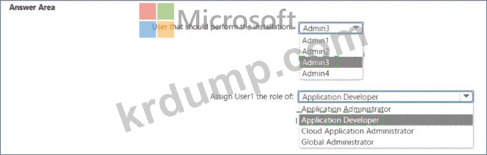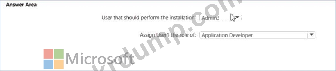 어떤 사용자가 설치를 수행해야 하며, Users1에게는 어떤 역할을 할당해야 할까요? 답변 영역에서 적절한 옵션을 선택하여 답변하세요.