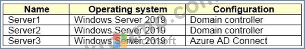 Azure Active Directory(Azure AD) 테넌트는 온프레미스 Active Directory 도메인과 동기화됩니다. 도메인에는 다음 표에 표시된 서버가 포함되어 있습니다.