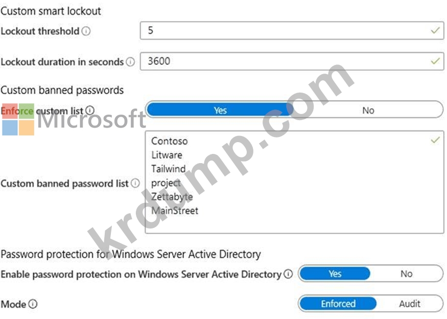 전시에 표시된 대로 Azure Active Directory(Azure AD) 암호 보호를 구성합니다. (전시 탭을 클릭합니다.)