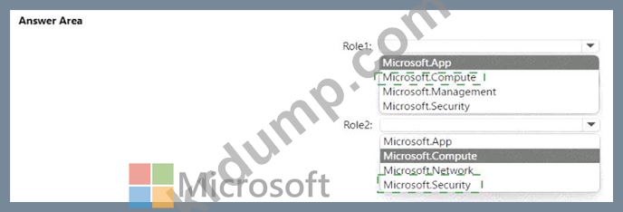 Role1과 Role2라는 두 개의 사용자 지정 역할을 만들어야 합니다. 솔루션은 다음 요구 사항을 충족해야 합니다.