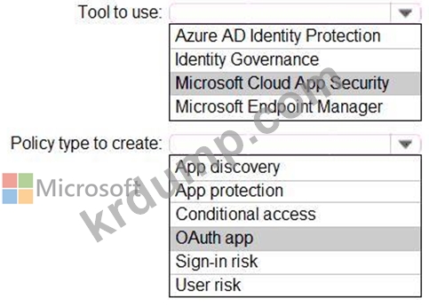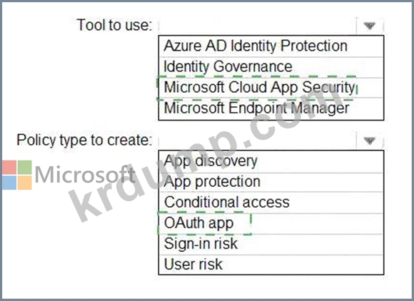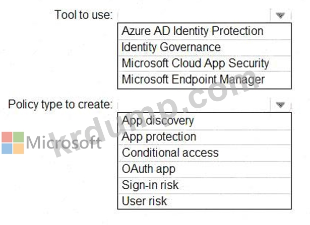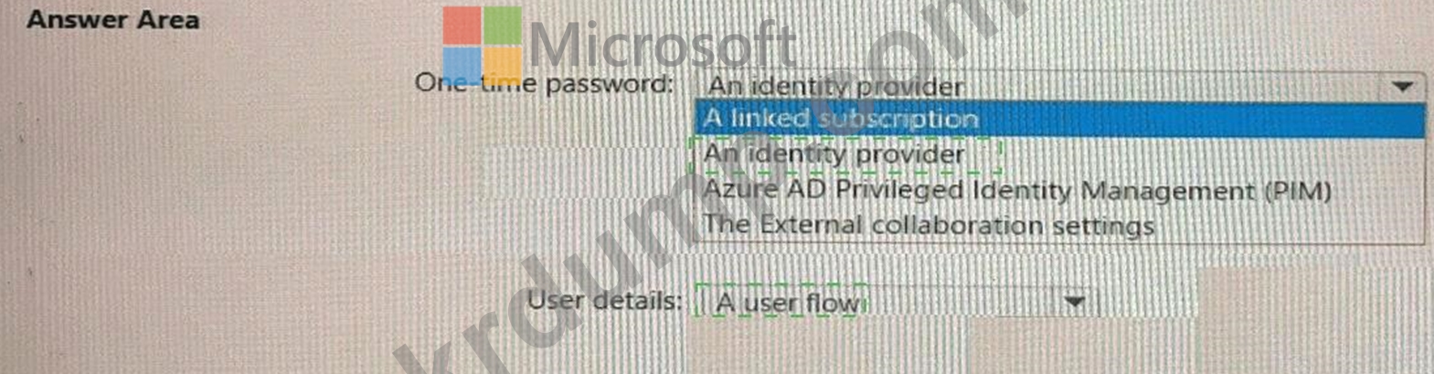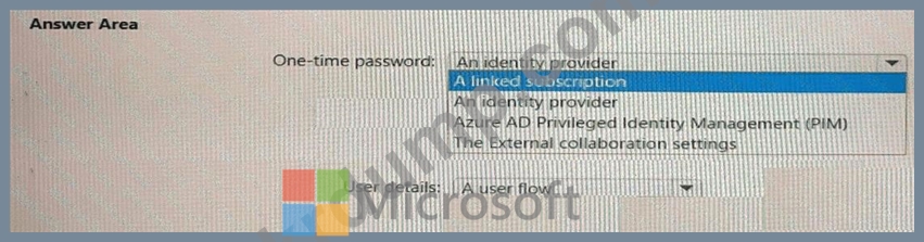 각 요구 사항에 대해 Azure Active Directory 관리 센터에서 무엇을 구성해야 할까요? 답변 영역에서 적절한 옵션을 선택하여 답변하세요.