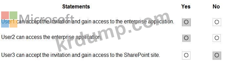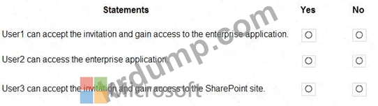귀사는 contosri.com이라는 Azure Active Directory(Azure AD) 테넌트를 보유하고 있습니다. 귀사의 비즈니스 파트너는 다음 표에 나와 있습니다.