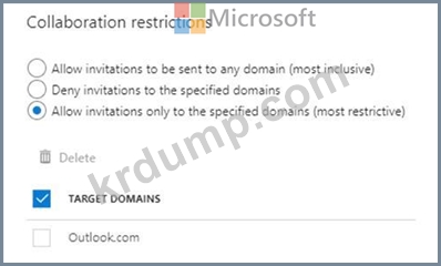 Azure Active Directory 관리 센터의 외부 협업 설정에서 다음 그림과 같이 협업 제한 설정을 구성합니다.