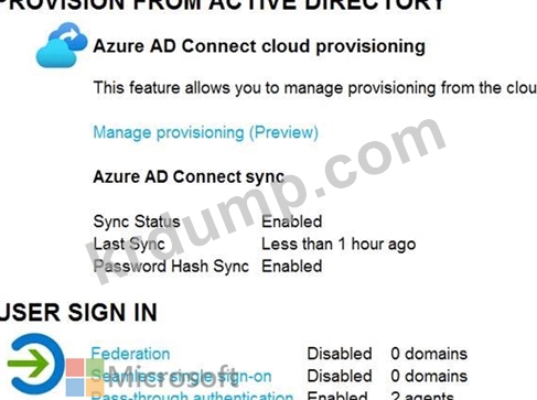 Azure AD Connect는 다음 그림과 같이 Azure AD에 구성되어 있습니다.
