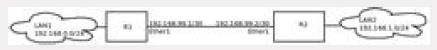 다음 다이어그램을 고려하십시오. LAN1의 장치에서 LAN2의 장치로 통신하려고 합니다.