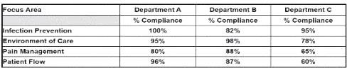 한 조직에서 품질 개선 프로젝트를 시행했습니다. 목표는 평균 준수율 90%입니다.