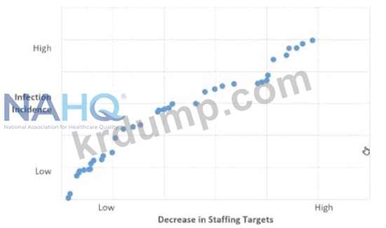 암 병원의 한 부서 간호 책임자가 다음 산점도에서 결과 데이터를 검토하고 평가하고 있습니다.