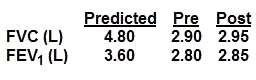 기관지 확장제 투여 전후의 폐활량 측정 결과는 다음과 같습니다.