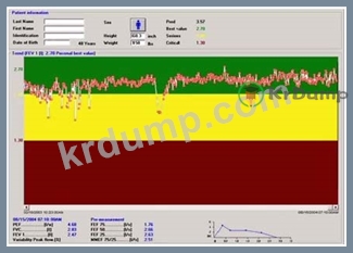 폐 기능 기술자는 다음과 같은 가정 모니터링 폐활량 측정 결과를 검토합니다.