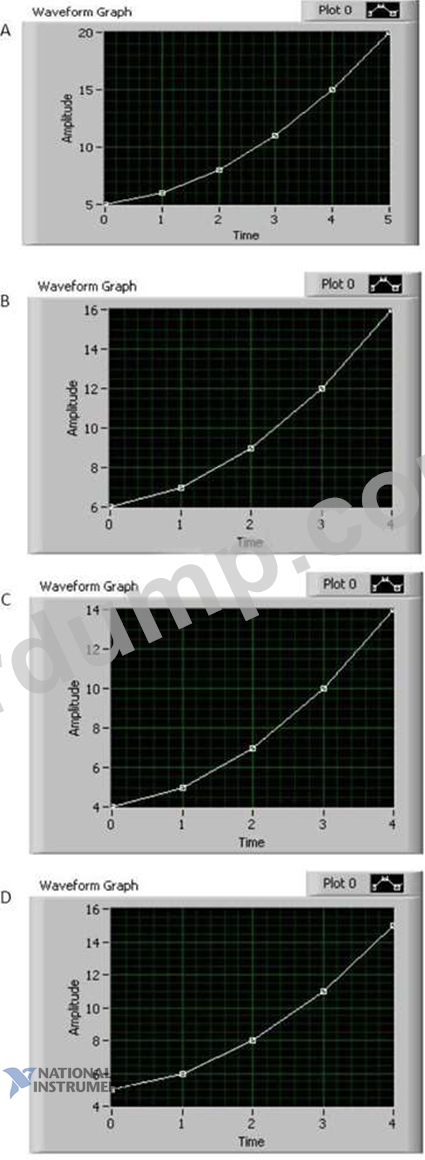 다음 코드가 실행된 후 파형 그래프 표시기의 출력과 일치하는 그래프는 무엇입니까?
