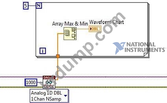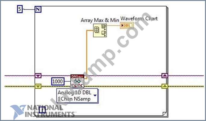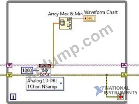 다음 기간 동안 1000개 샘플의 각 세트에 대한 최대값만 수집하고 플로팅하는 VI 스니펫