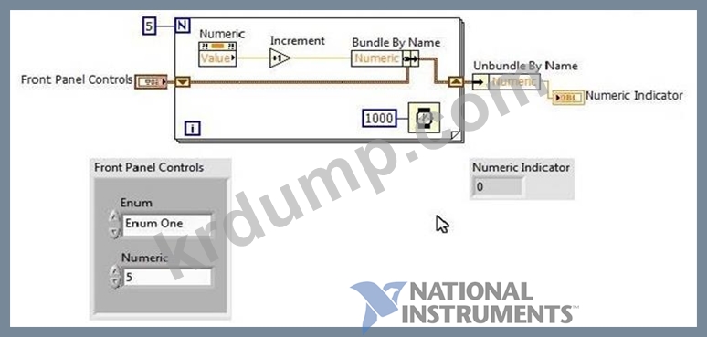 VI는 숫자 값을 5로 하여 실행을 시작합니다. 4 루프 반복(i=3)이 끝나면 사용자는 프런트패널 컨트롤 숫자를 값 2로 변경합니다.