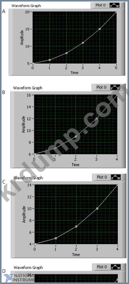 다음 코드가 실행된 후 파형 그래프 표시기의 출력과 일치하는 그래프는 무엇입니까?