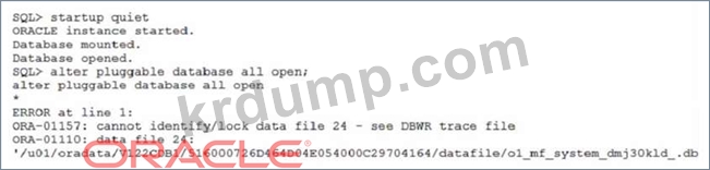 시스템 충돌 후 인스턴스가 다시 시작되고 PDB를 열려고 시도하면 다음과 같은 결과가 발생합니다.
