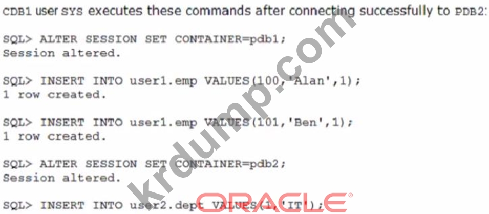 3. user1 .EMP는 PDBI의 테이블이고 user2.DEPT는 PDB2의 테이블입니다.
