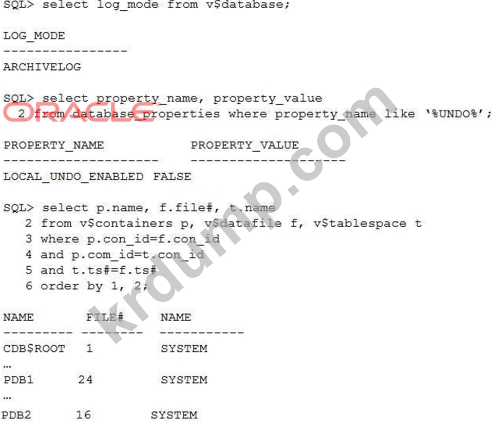 존재하는 유일한 RMAN 백업은 CDB$ROOT에 연결된 동안 backup database 명령으로 생성되었습니다.
