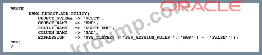 SCOTT.EMP 테이블의 SAL 열에 편집 정책이 추가되었습니다.