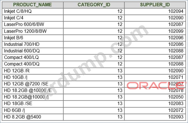 CATEGORY_ID 열의 값이 12 또는 13이고, SUPPLIER_ID 열의 값이 102088인 테이블에서 PRODUCT_NAME을 표시해야 합니다.