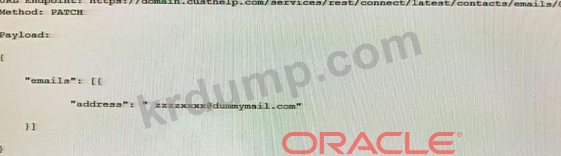 ID = 8007000이고 이메일 주소가 [email protected]인 Oracle B2C Service 연락처의 기본 이메일 주소를 업데이트하는 올바른 방법은 무엇입니까?