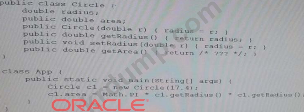 클래스가 제대로 캡슐화되지 않았습니다. 대신 면적을 계산하고 반환하려면 circle 클래스를 변경해야 합니다.