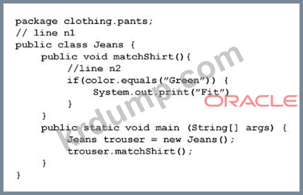 E. n1행에서 삽입:정적 의류 가져오기.Shirt.getcolor;n2행에서 삽입:문자열 색상 = getColor();