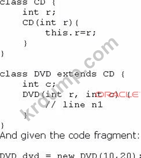 DVD 개체를 성공적으로 인스턴스화하려면 n1행에서 어떤 코드 조각을 사용해야 합니까?