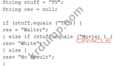 D. stuff.equals("TV") ? res= "Walter" : stuff.equals ("영화") ? res = "흰색" : res = "결과 없음";