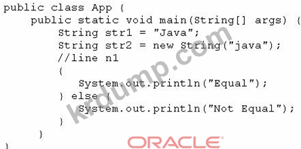 n1행에 삽입할 때 App 클래스가 Equal을 인쇄할 수 있도록 하는 코드 조각은 무엇입니까?