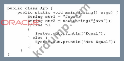 n1행에 삽입할 때 App 클래스가 Equal을 인쇄할 수 있도록 하는 코드 조각은 무엇입니까?
