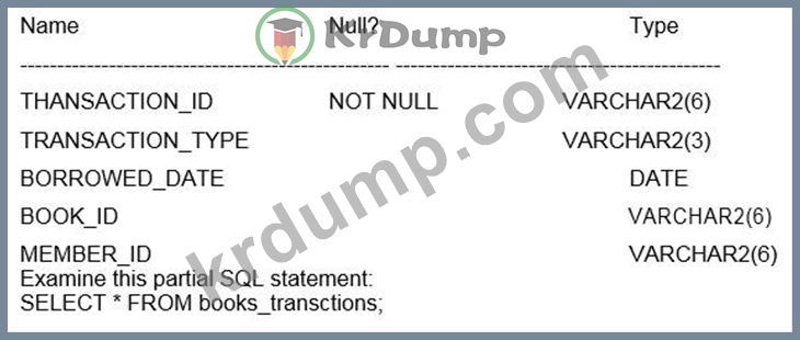 Examine the description of the BOOKS_TRANSACTIONS table: