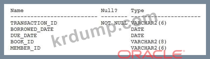 BOOKS_TRANSACTIONStable의 구조를 조사하십시오.
