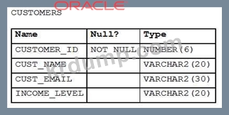 Exhibit를 보고 CUSTOMERStable의 구조를 조사하십시오.
