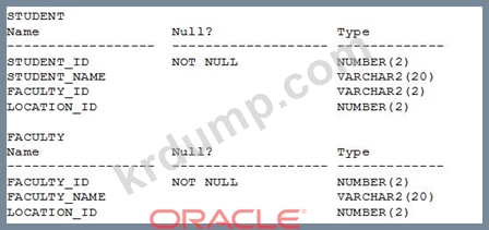 STUDENT 및 FACULTY 테이블의 구조에 대한 전시회를 보십시오.