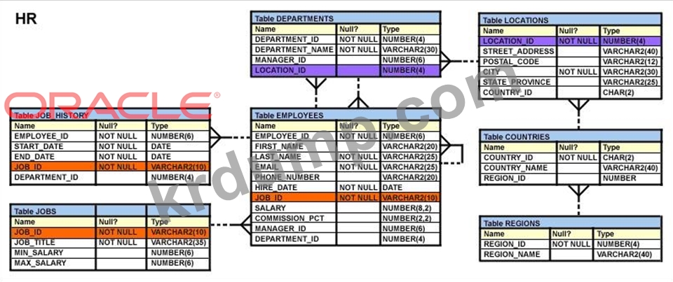 Exhibit를 보고 EMPLOYEES 테이블의 구조를 조사하십시오.