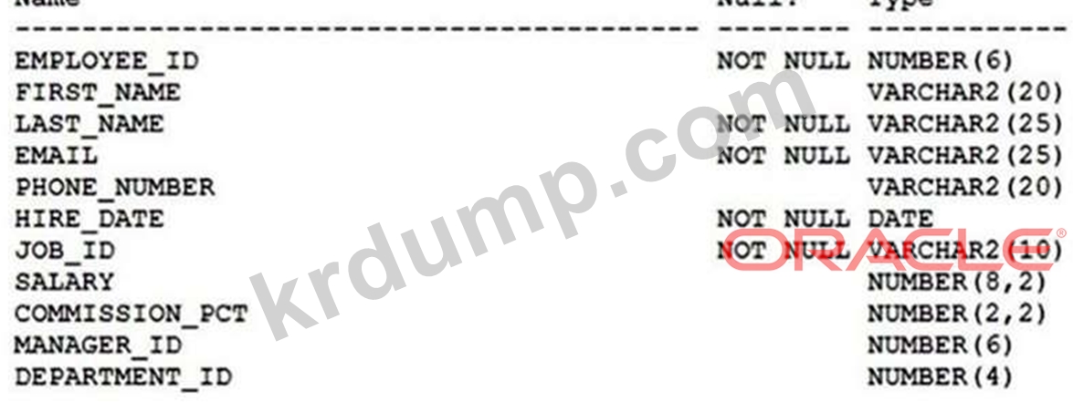 EMPLOYEES 테이블의 구조를 조사하십시오.