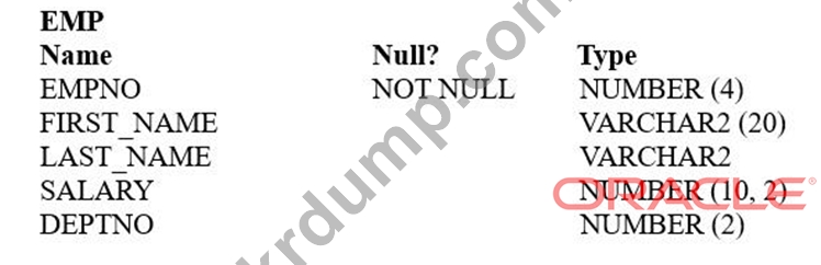Exhibit를 보고 분할되지 않고 인덱스로 구성된 테이블이 아닌 EMP 테이블의 구조를 조사하십시오. (2개를 선택하세요.)