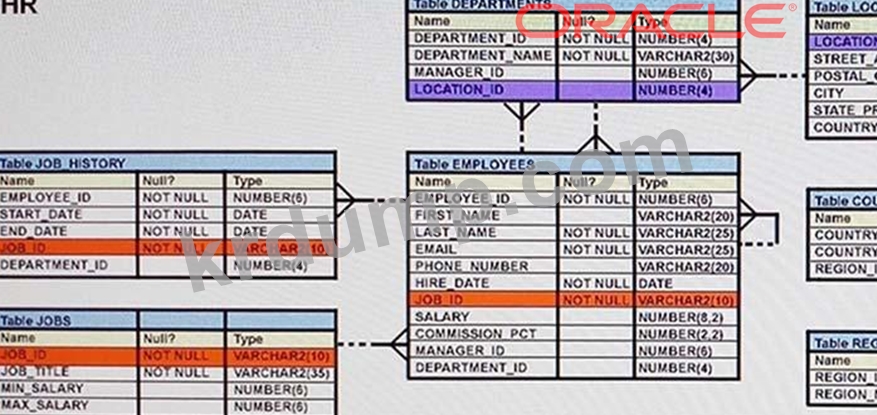 EMPLOYEES 테이블에는 데이터 유형 NUMBER의 EMP_ID 열과 DATE 데이터 유형의 HIRE_DATE 열이 있습니다.