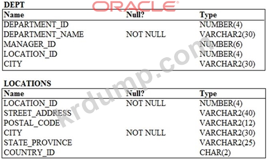 전시회를 보고 DEPT 및 LOCATION테이블에 대한 설명을 검토합니다.