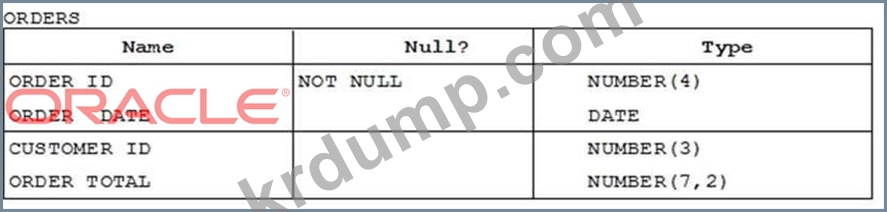 ORDERStable에는 데이터가 포함되어 있으며 모든 주문에는 고객 ID가 할당되어 있습니다. CUSTOMER_ID 열에 NOTNULL 제약 조건을 추가하는 명령문은 무엇입니까?