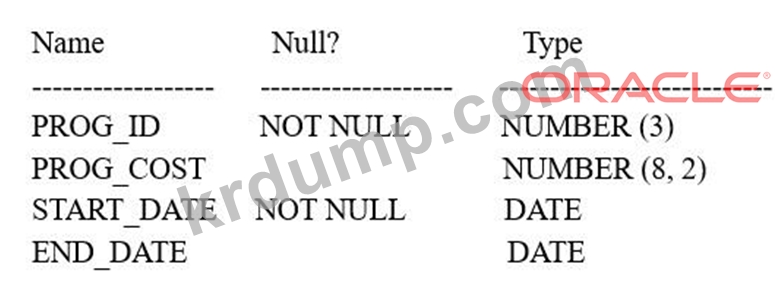 PROGRAMS 테이블의 구조를 조사하십시오.