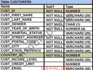 전시회를 보고 CUSTOMERS 테이블의 구조를 조사하십시오.