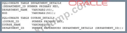 DEPARTMENT_DETAILS 및 COURSE_DETAILS 테이블을 생성하는 데 사용된 명령을 검토합니다.