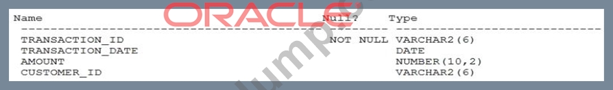 TRANSACTIONS 테이블에 대한 설명을 검토합니다.