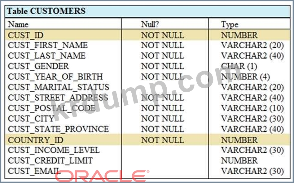 전시회를 보고 CUSTOMERS 테이블의 구조를 살펴보십시오.