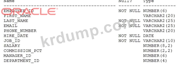EMPLOYEES 테이블의 구조를 조사하십시오.