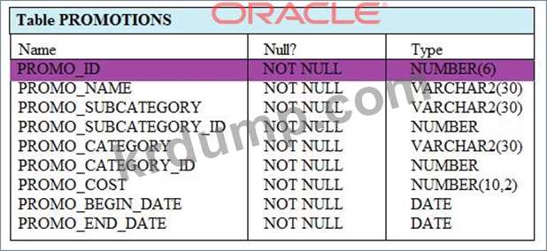전시회를 보고 PROMOTIONS 테이블의 구조를 조사하십시오.