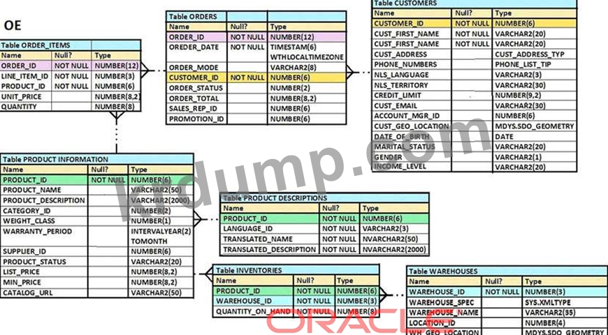 전시회를 보고 ORDERS 테이블의 구조를 조사하십시오.